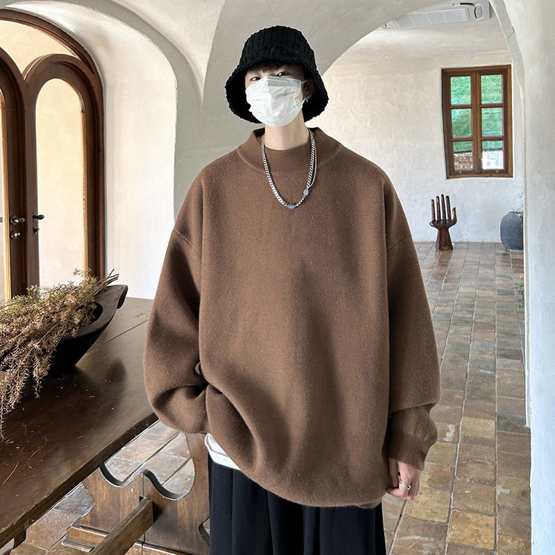 Spring And Autumn Ins Fashion Brand Loose And Idle Solid Color Sweater Round Neck Sweater For Men