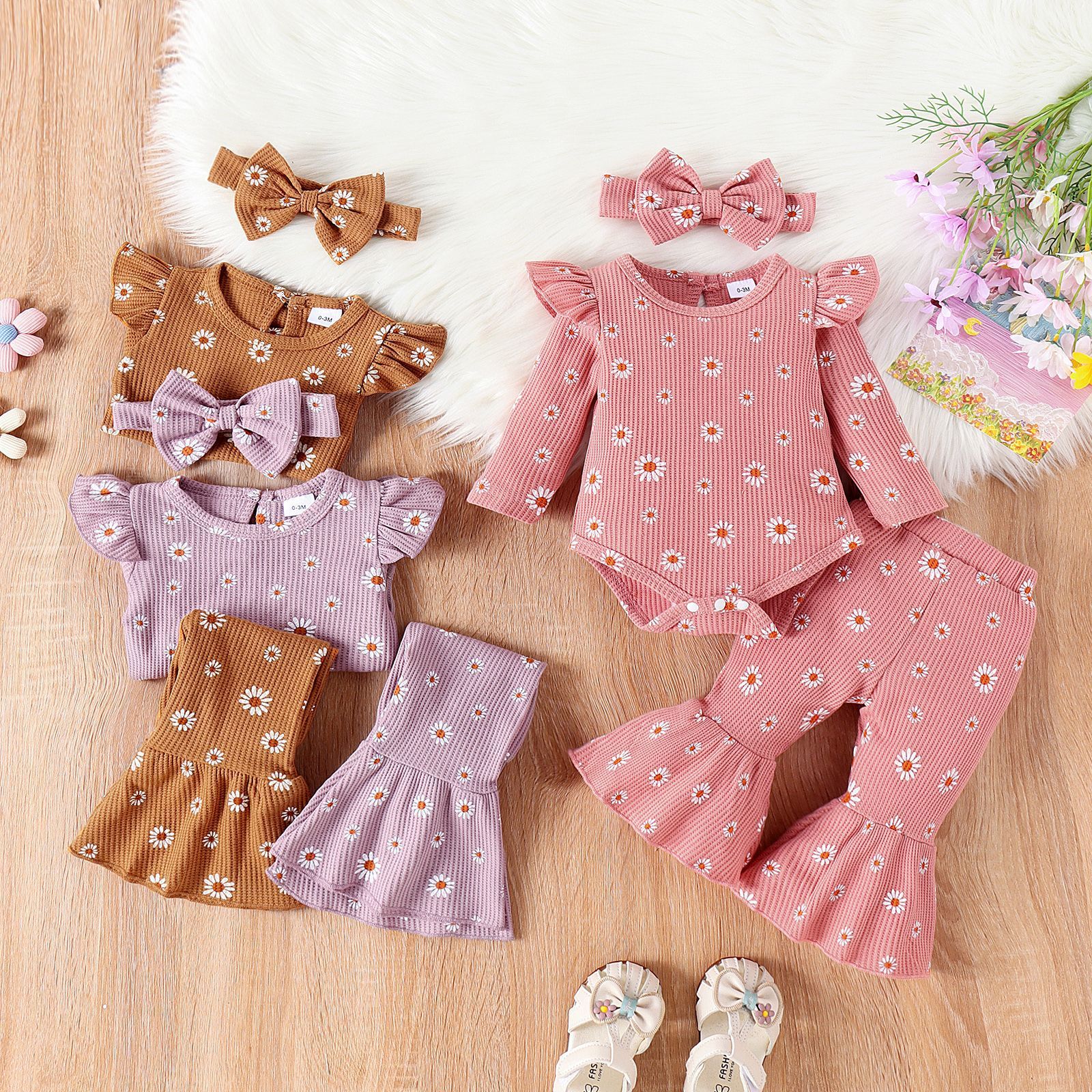 Children's Printed Top Bell-bottom Pants Hair Band Set