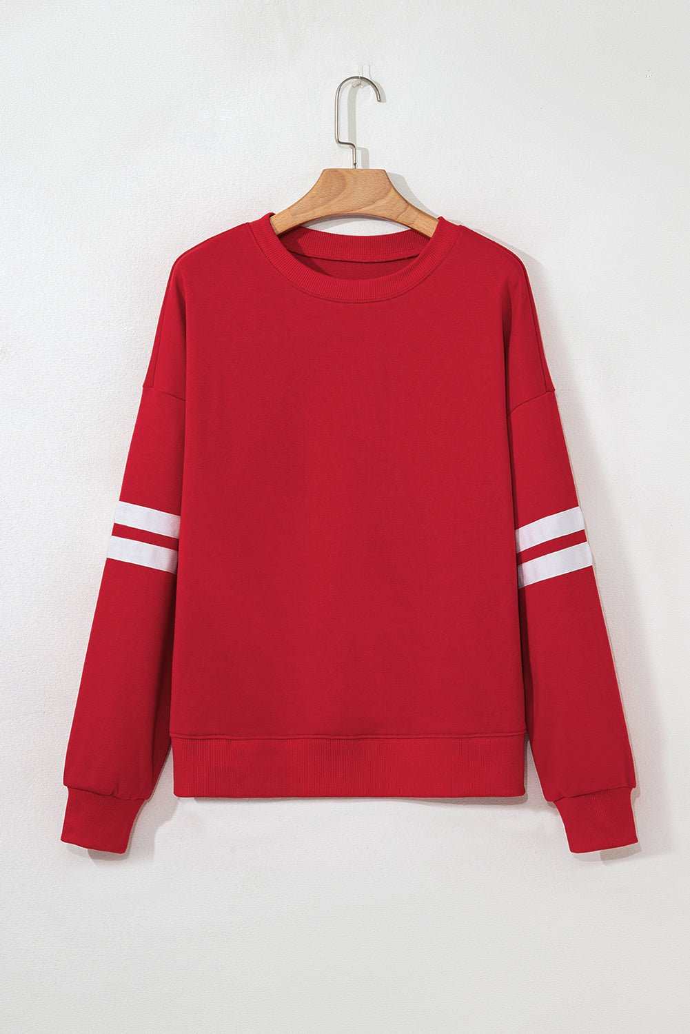 Fiery Red Varsity Striped Detail Drop Shoulder Oversized Sweatshirt