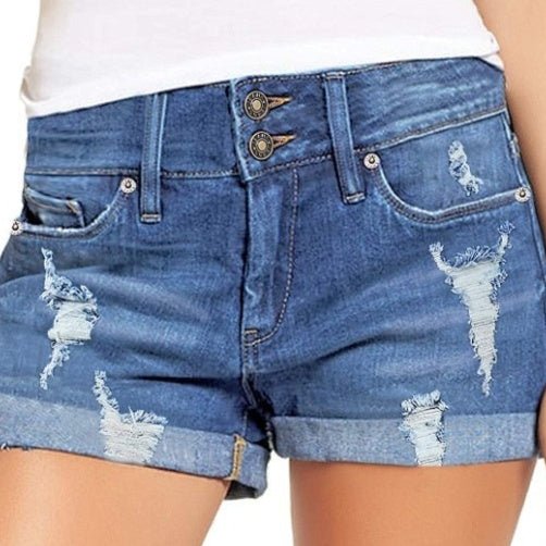 Womens New Style Single-Breasted Ripped Denim Shorts
