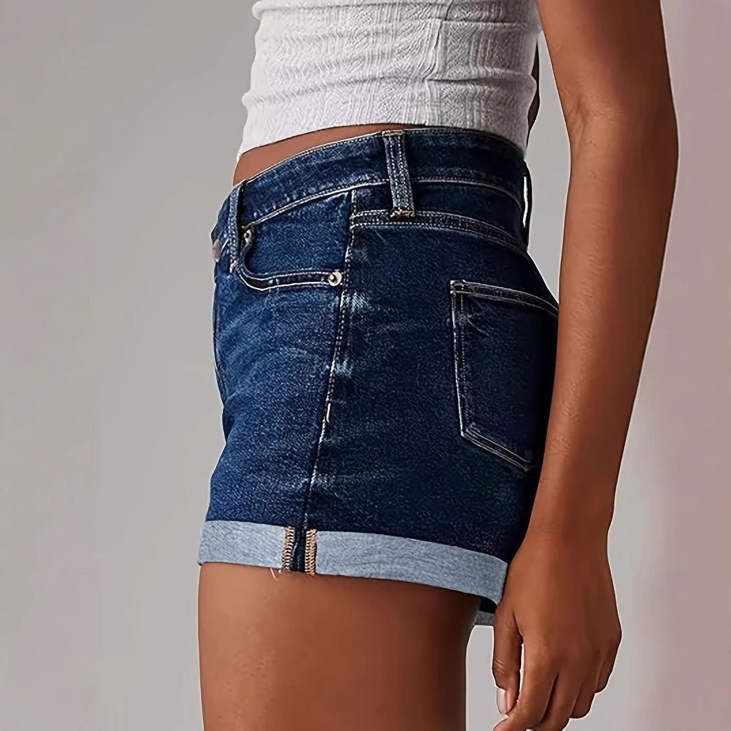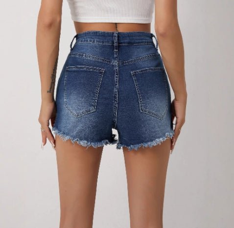 Womens High-waisted Slim-fit Ripped Denim Shorts