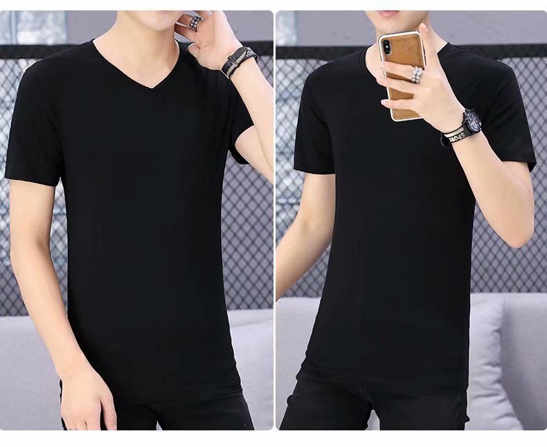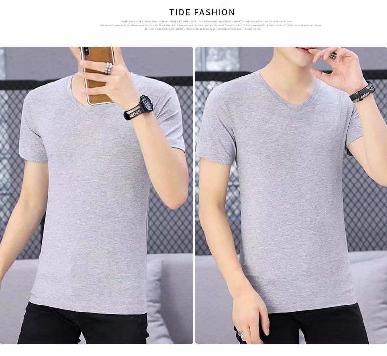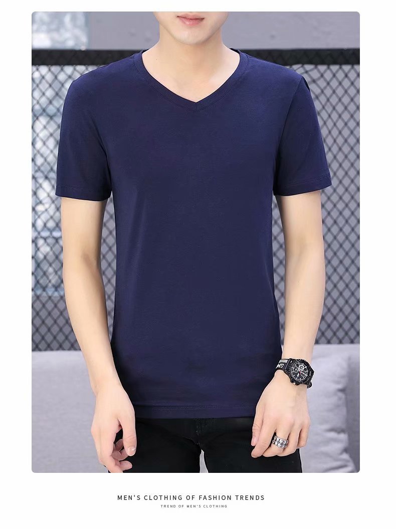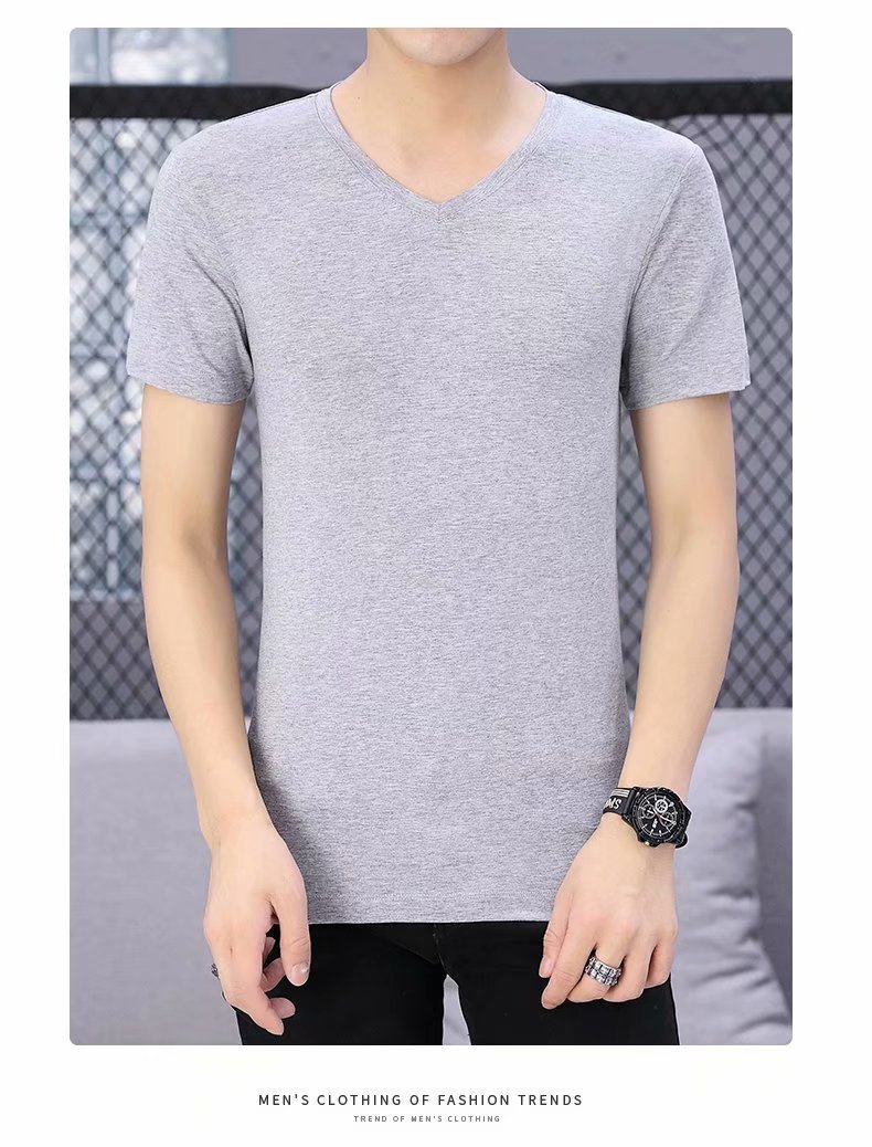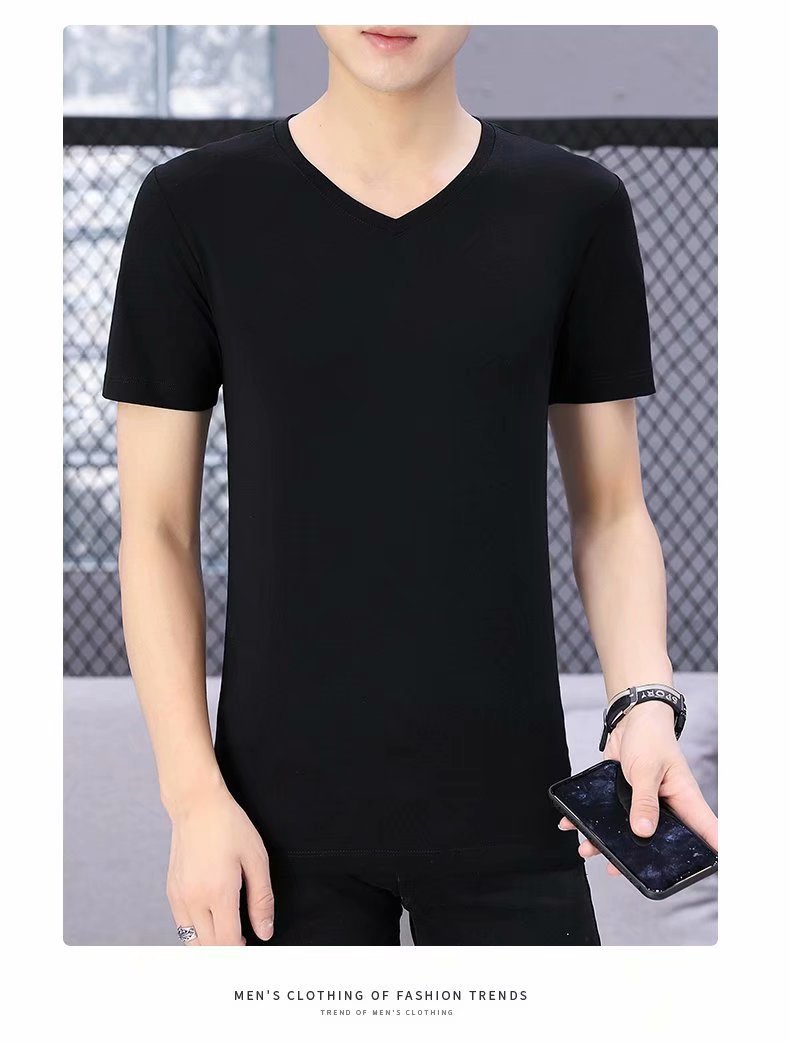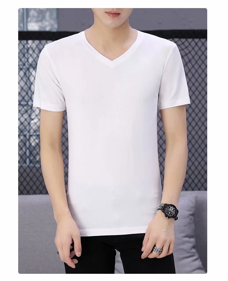 Mens Short-Sleeve V-Neck T-Shirt Summer Slim-Fit White All-Match TeeMens Short-Sleeve V-Neck T-Shirt Summer Slim-Fit White All-Match Tee