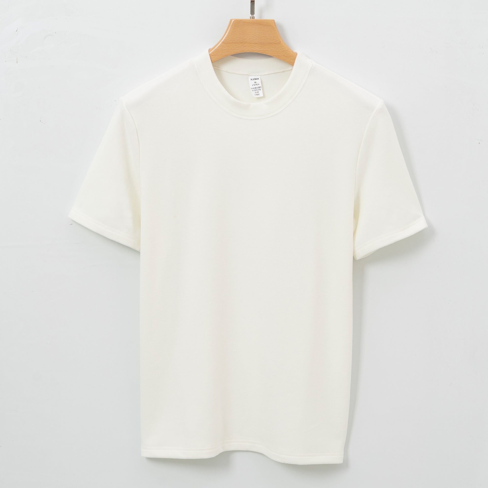 Men's Short T-shirt With A Crew Neck Made From Long-pile Fabric For Warmth