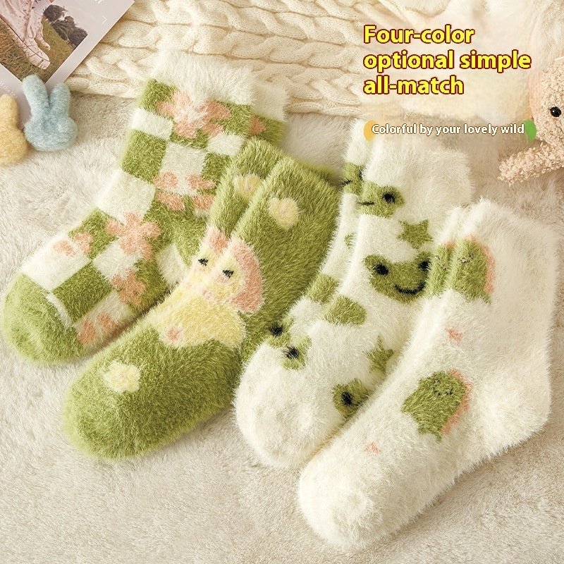 Mink Fur Socks Female Cartoon Animal Cute Warm Sleep