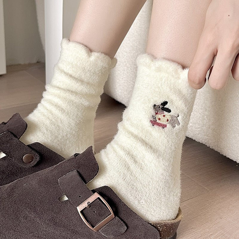 Cartoon Puppy Autumn And Winter Warm Extra Thick No Hair Shedding Snow Socks