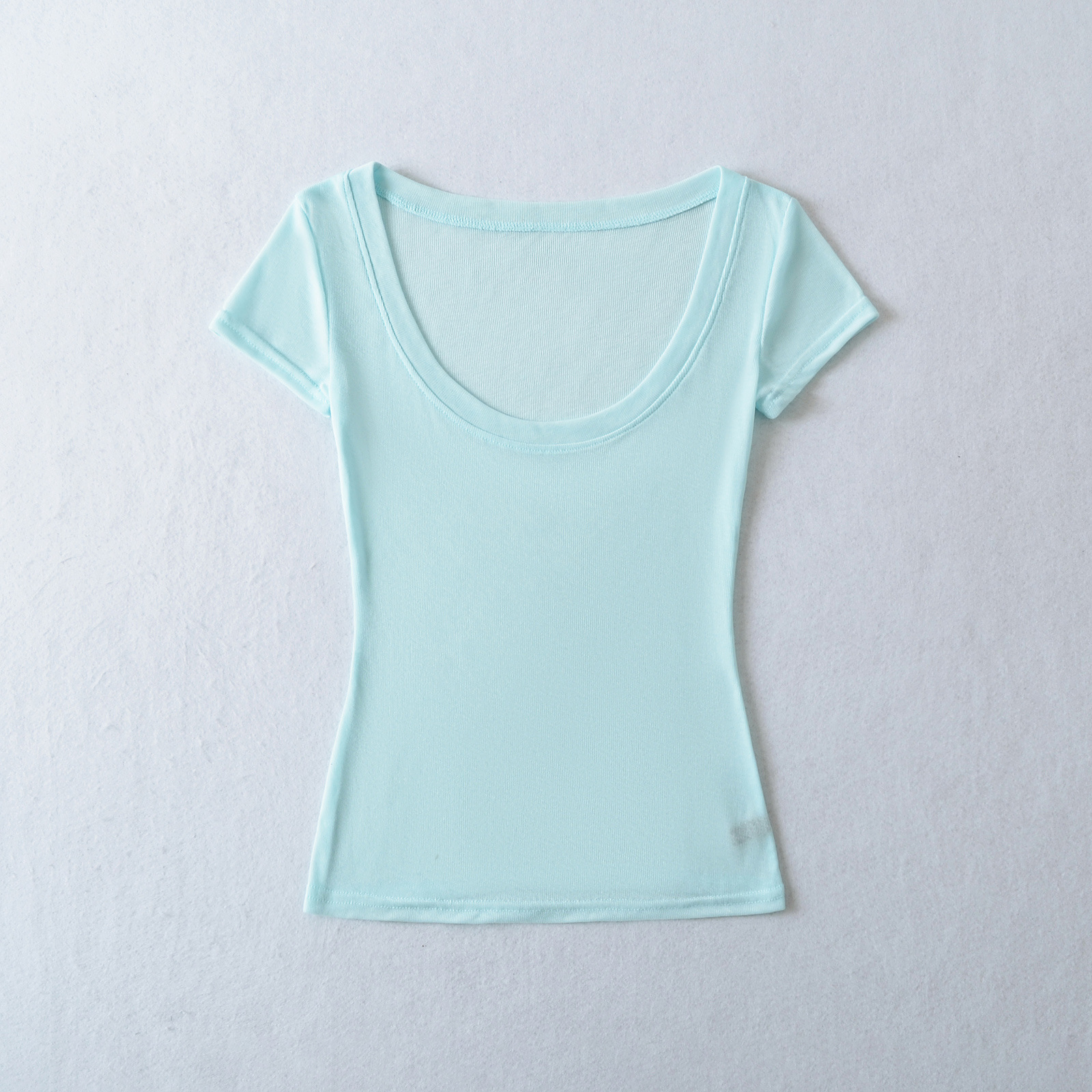 Spring New Summer Casual Pure Thin Transparent Lazy Pure Desire Short Sleeve T-shirt