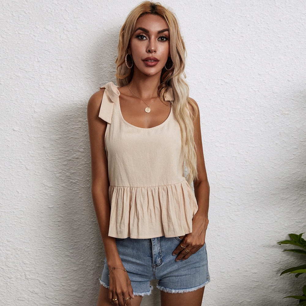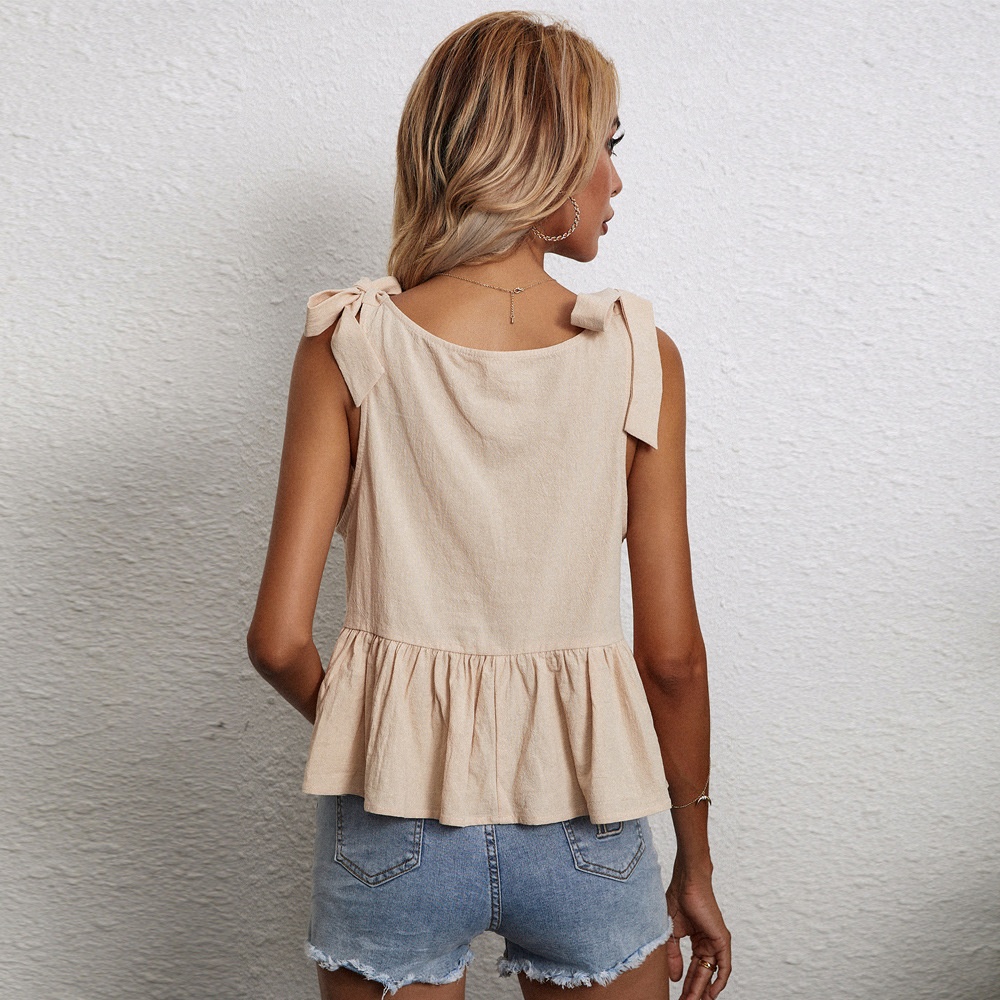 Women's Loose Versatile Tie-Waist Linen Straight Tube Sleeveless Vest TopWomen's Loose Versatile Tie-Waist Linen Straight Tube Sleeveless Vest Top