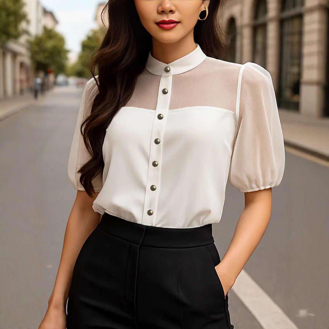 Elegant Solid-Color Lapel Women's Versatile Shirt