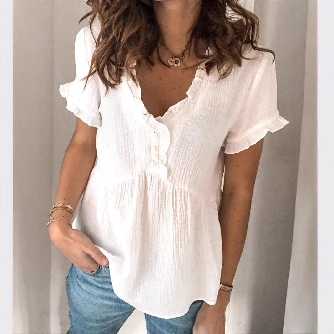 Women's Casual Loose Solid-color Patchwork Short-sleeve Shirt Top