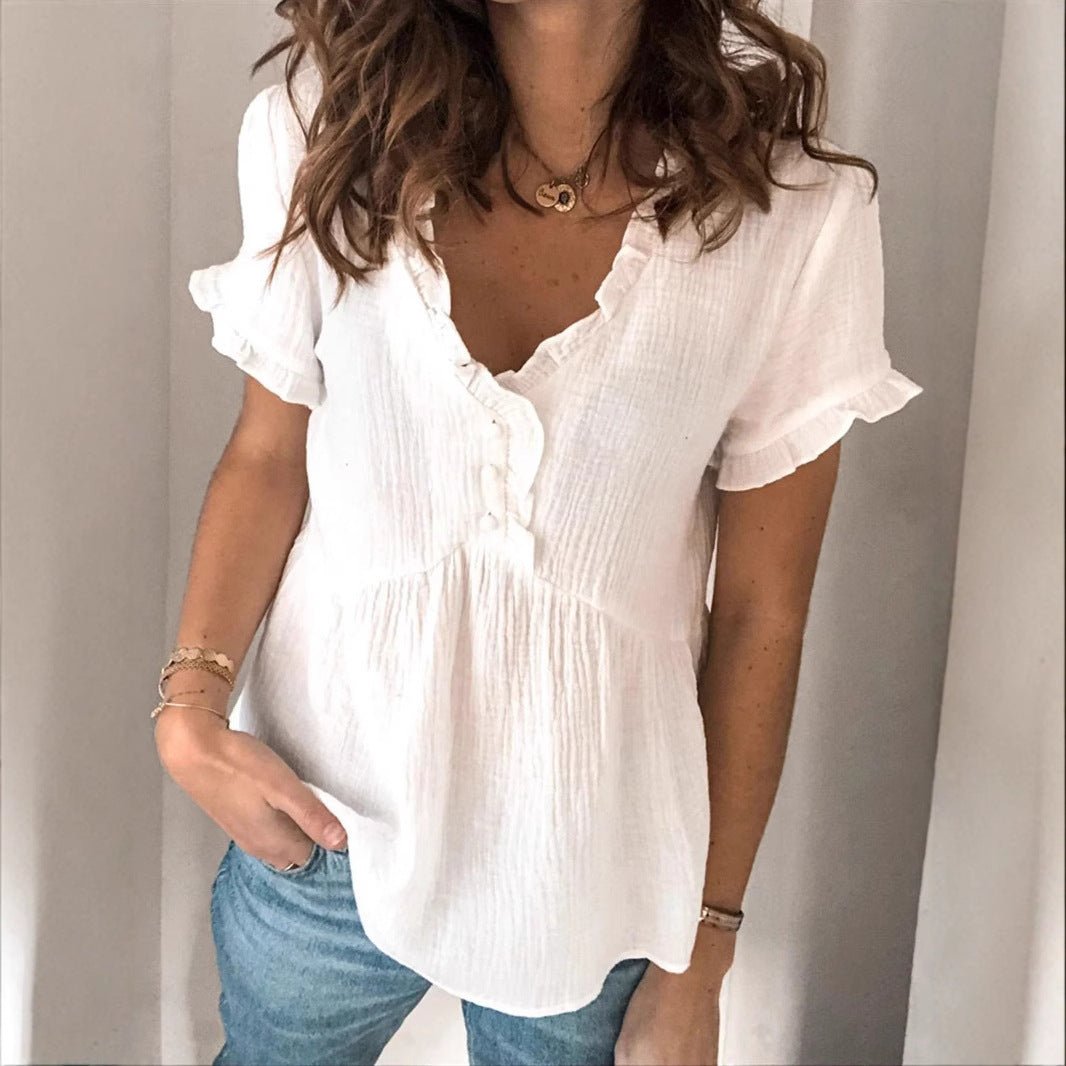 Women's Backless VNeck Versatile And Stylish ShortSleeve Top