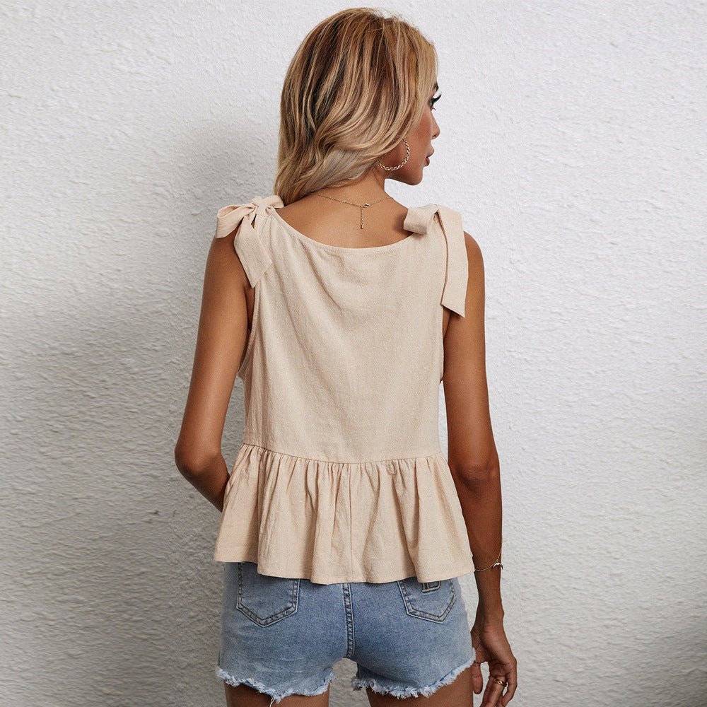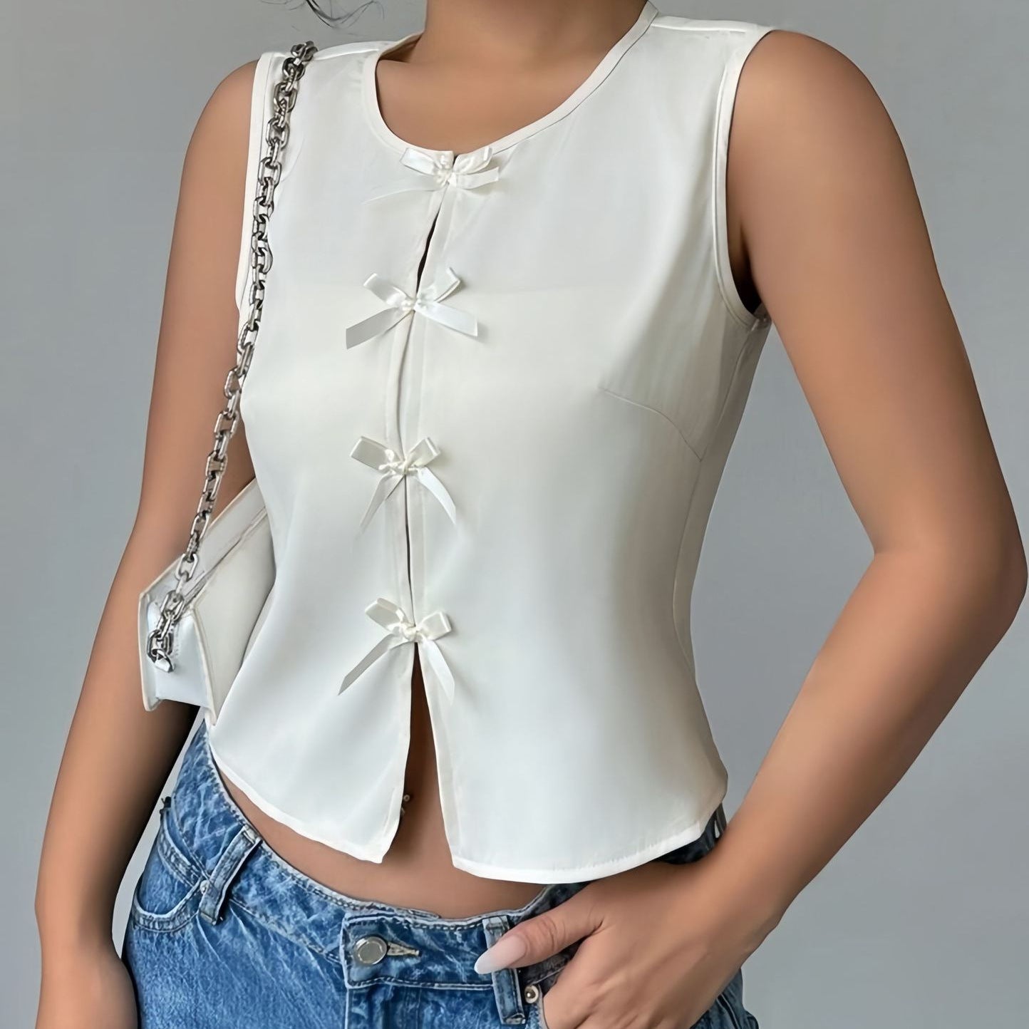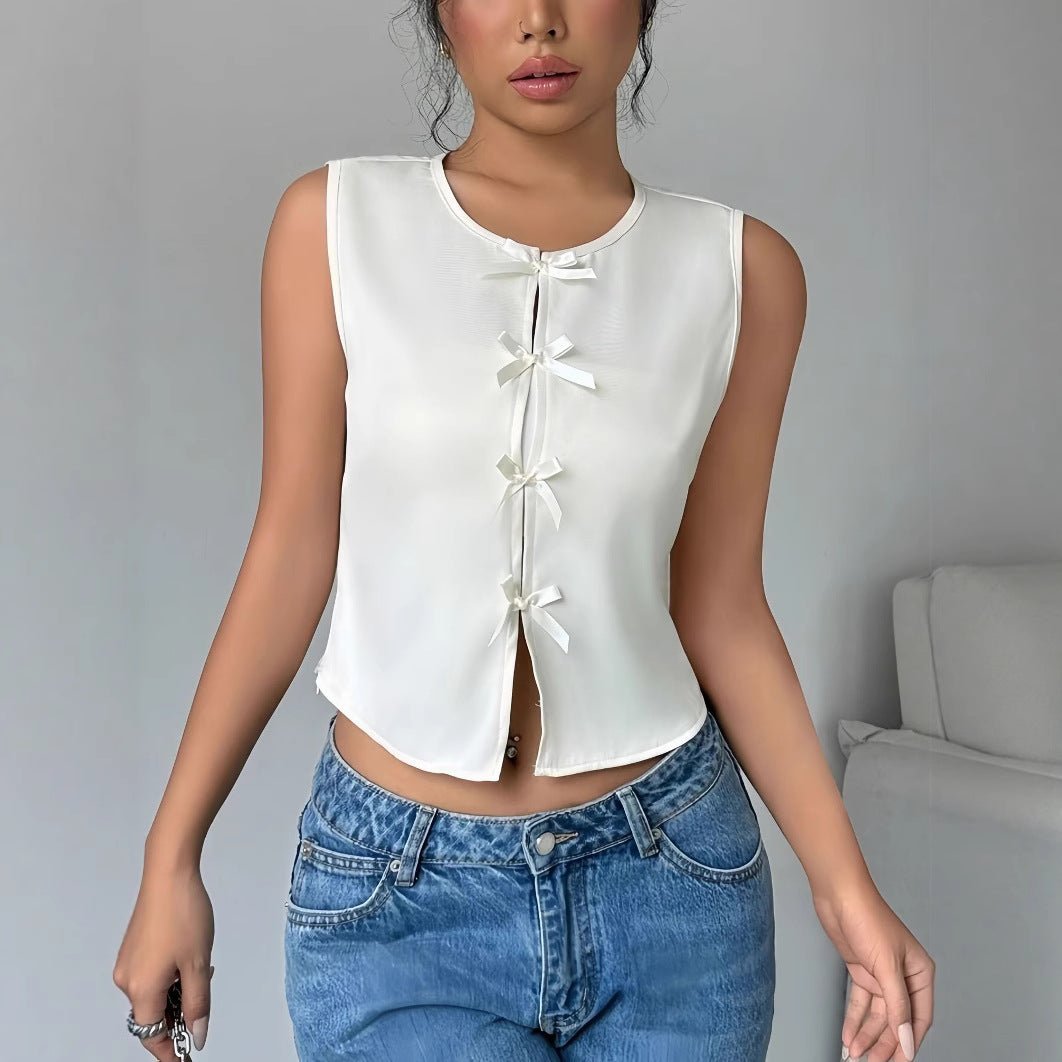 Commuter Sleeveless Bow-Tie Strap Vest For Women